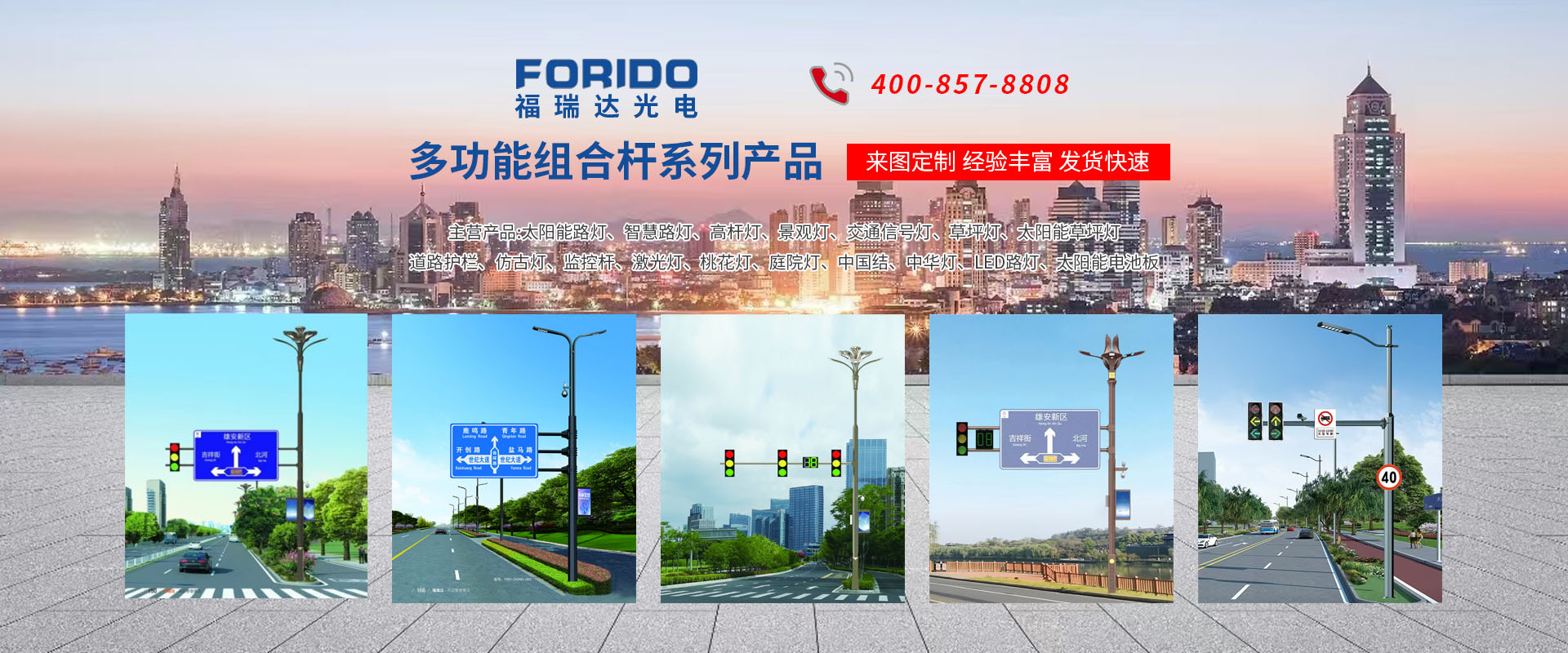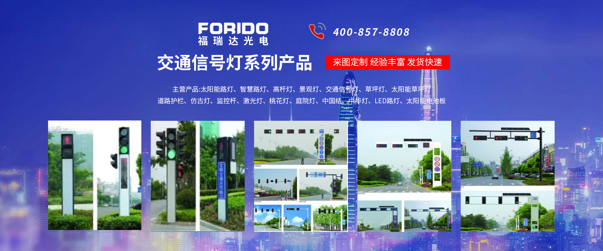 揚(yáng)州福瑞達(dá)光電科技有限公司位于淮左名都?xì)v史文化名城、中國(guó)路燈制造基地?fù)P州市北郊菱塘工業(yè)園,公司占地面積76000平方米,注冊(cè)資金10518萬(wàn)元,擁有高級(jí)技術(shù)嫻熟的員工280多人,擁有大型折彎?rùn)C(jī)、激光切割、數(shù)控注塑機(jī)、壓鑄機(jī)、自動(dòng)埋弧焊、氣焊、彩色粉末靜電噴塑等大型自動(dòng)化設(shè)備,我公司是一家集設(shè)計(jì)、研發(fā)、生產(chǎn)、銷售、施工安裝服務(wù)為一體的戶外交通照明產(chǎn)品制造商,主要生產(chǎn)智慧路燈、太陽(yáng)能路燈、LED路燈、高桿燈、景觀燈、交通信號(hào)燈、交通標(biāo)志牌、通信鐵塔、路跨鋼結(jié)構(gòu)、公交站臺(tái)、太陽(yáng)能光伏組件、景點(diǎn)亮化、樓宇亮化工程的設(shè)計(jì)施工等。公司秉承開(kāi)拓創(chuàng)新、銳意進(jìn)取、精誠(chéng)服務(wù)的企業(yè)精神,堅(jiān)持以“誠(chéng)信為本、技術(shù)為先、服務(wù)是金”的合作理念,我們憑借先進(jìn)的制造工藝、優(yōu)質(zhì)的產(chǎn)品質(zhì)量、合理的市場(chǎng)價(jià)格和完善的售后服務(wù)贏得了廣闊的市場(chǎng)和客戶的信賴。  我公司已通過(guò)ISO9001質(zhì)量體系認(rèn)證、ISO14001環(huán)境管理體認(rèn)證,CQC產(chǎn)品認(rèn)證,中國(guó)節(jié)能產(chǎn)品認(rèn)證,通過(guò)“CCC”強(qiáng)制性產(chǎn)品認(rèn)證,具有市政總承包,照明,交安,設(shè)計(jì)等資質(zhì)···